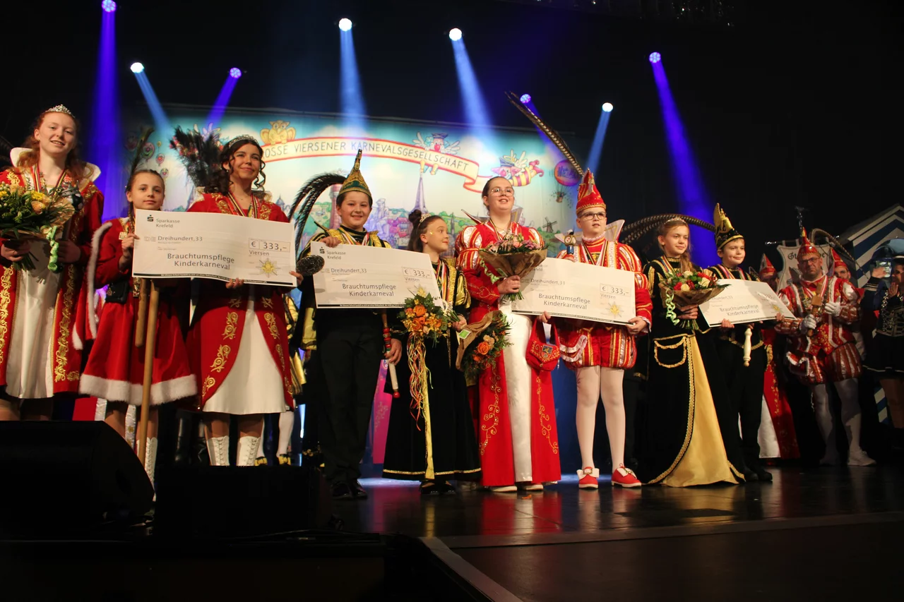Denn es kamen die Kinderprinzenpaare und die großen Prinzenpaare aus Süchteln, Dülken, Boisheim und Viersen und zogen unter dem Tambourcorps Viersen in die Festhalle ein. Die Kinderprinzenpaare bekamen einen Scheck in einer Höhe von 333,33€. Die Kinderprinzessin aus Boisheim, von der Ki Ka Kai a Lina I. hatte allen Grund, an diesem Tag zu feiern, denn sie hatte Geburtstag, und die ganze Festhalle sang ihr ein Ständchen.
