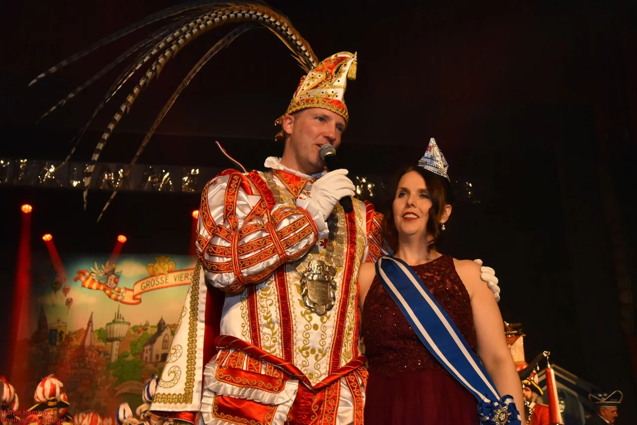 Hoher Besuch erwartete man in der Festhalle, denn es zog das Prinzenpaar der Landeshauptstadt Düsseldorf ein. Mit Prinz Marcus I. und Venetia Nicole unter dem Musikzug der Düsseldorfer Prinzengarde.
