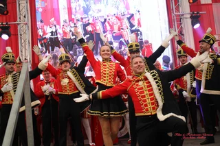 Wer auf dieser Veranstaltung nicht fehlen durfte, das war das Männerballett, das im Vorjahr schon gefeiert wurde für seinen Auftritt, und das sollte in diesem Jahr nicht anders sein. Was diese zwei Trainerinnen mit diesen Männern mitmachen müssen, das ist gewaltig. Melina Meertz und Eva van Overbrüggen, diese beiden 25 und 32 Jahre alt, haben mit den Männern in ca. 5 Monaten einen Tanz zusammengestellt. Es war ein Tanz, der mit Basketball zu tun hatte. Aber diese zwei hatten die Männer gut im Griff, denn sie boten dem Publikum im Saal wieder einen perfekten Tanz an, und wie sollte es anders kommen, als dass die Zugaberufe immer lauter wurden?