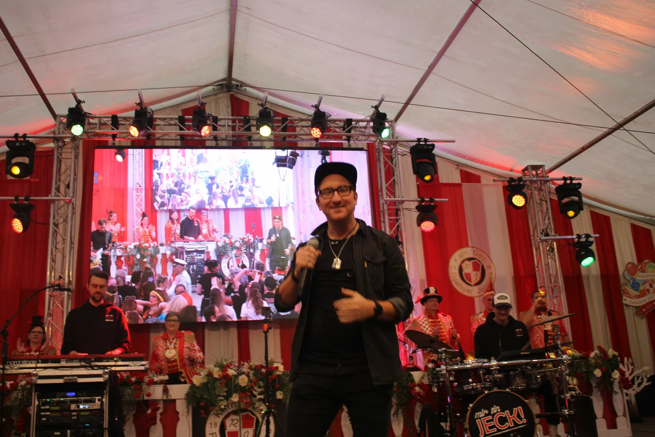 Eine Stimmungsband, die im Kreis Viersen ihren Namen gemacht hat. Es ist die Band Mir sin Jeck. Sie wissen, wie man einen Saal auf links dreht, mit ihrem Frontsänger Rene. Mir sin Jeck ist nicht nur eine Band, sondern auch ein Lebensgefühl, welches von jedem einzelnen Bandmitglied gelebt und nach außen verkörpert wird. Mir sin Jeck ist eine eingeschworene Truppe, die Spaß an der Musik hat und diesen Spaß auch auf die Bühne und das Publikum überträgt. Mir sin Jeck steckt an und weckt den Jecken in jedem. Wie man es an diesem Tag erleben konnte.